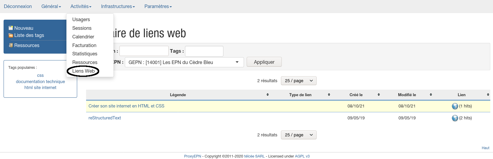 ProxyEPN laisse la possibilité de déposer des liens vers des sites web, ce qui permet de constituer un annuaire de ressources en ligne.