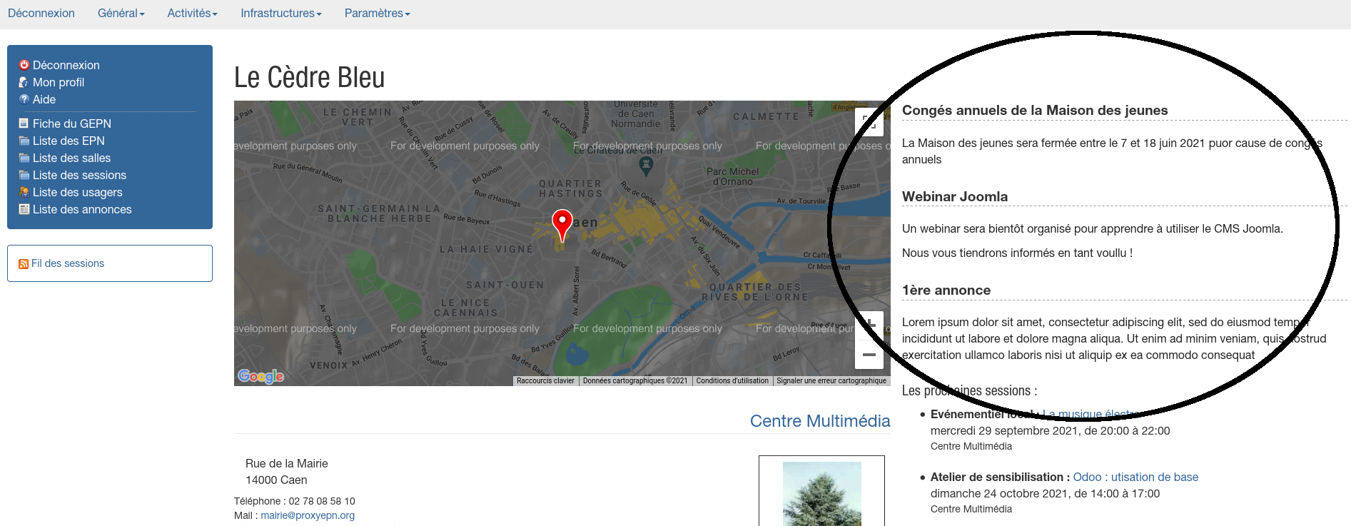 Les annonces correspondent à des messages que l’animateur d’EPN souhaite faire passer aux utilisateurs de son EPN.