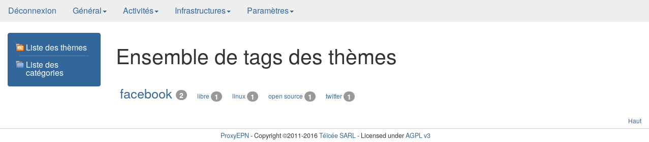 On peut accéder aux annonces soit via l’onglet Général → Annonces, ou bien directement à partir de la page d’accueil de ProxyEPN, en cliquant sur Liste des annonces, dans le menu de gauche.