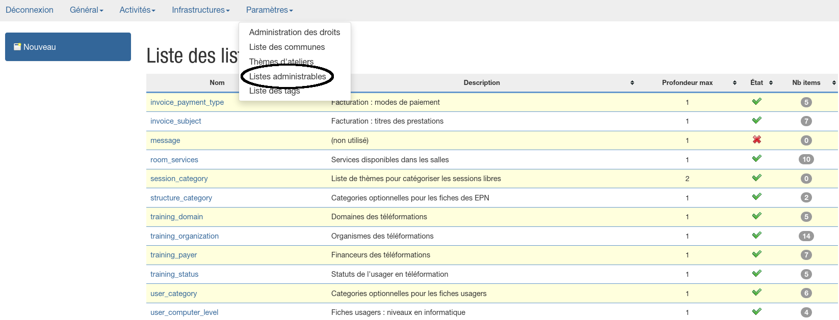 Vous pouvez consulter les listes administrables en vous rendant sur l’onglet Paramètres → Listes administrables.