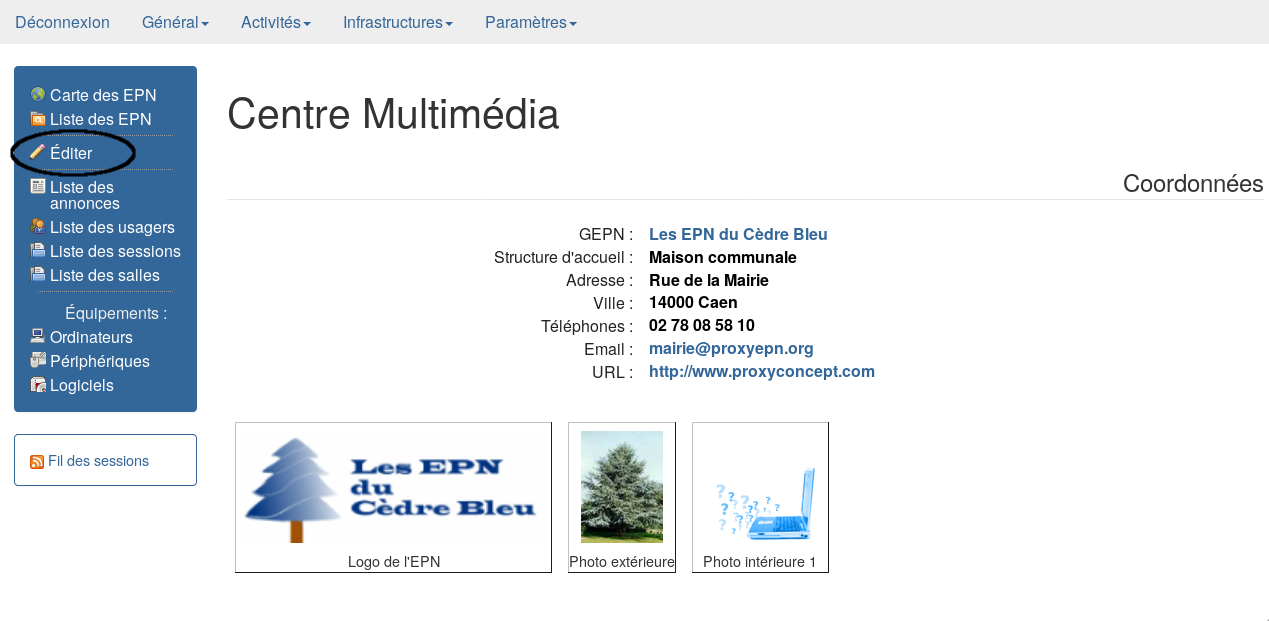L’animateur peut lui-même éditer la fiche de son EPN en se rendant sur sa fiche, puis en cliquant sur Editer. Cela peut s’avérer utile en cas de changement d’adresse postale ou de numéro de téléphone par exemple.