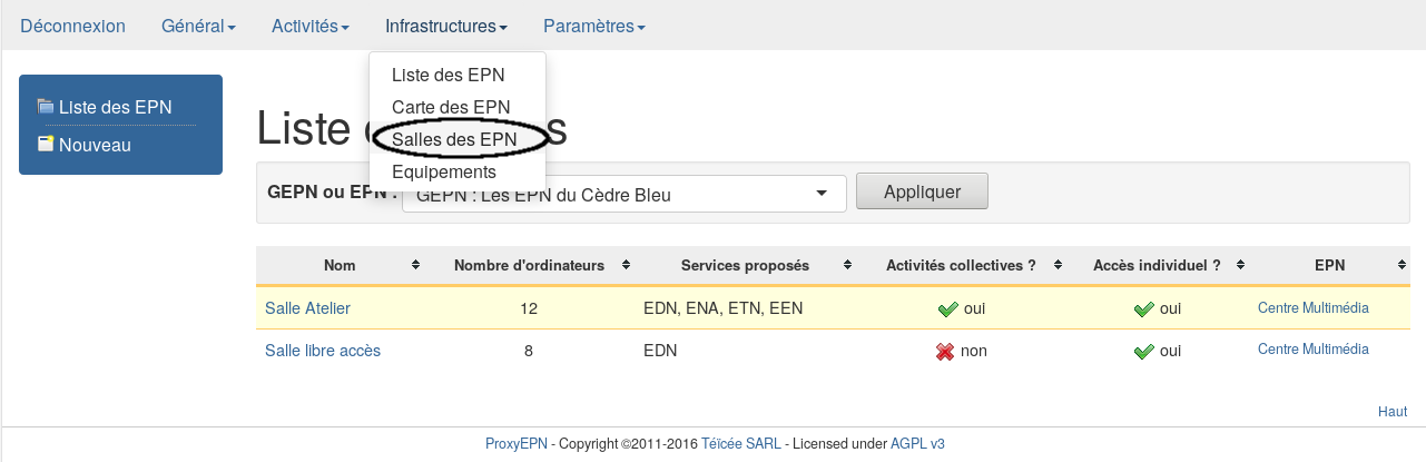 Prenons l’exemple d’un EPN qui possèderait deux salles :
