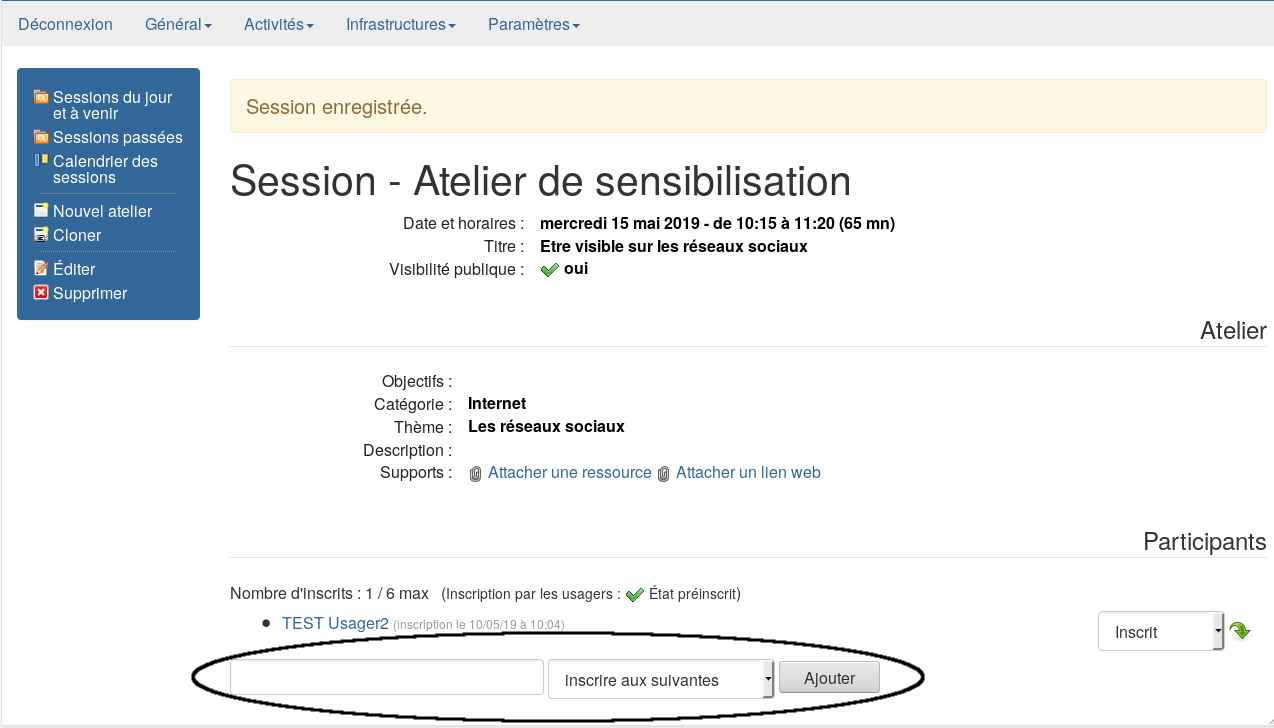 soit directement lorsque l’on créé l’atelier (voir « Ajouter une nouvelle session ») ;