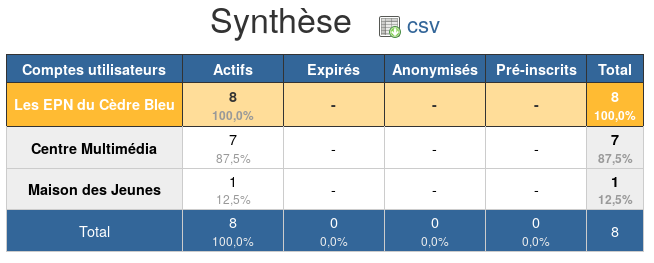 Les statistiques de participation des usagers sont générées au sein de tableurs, téléchargeables en .csv.