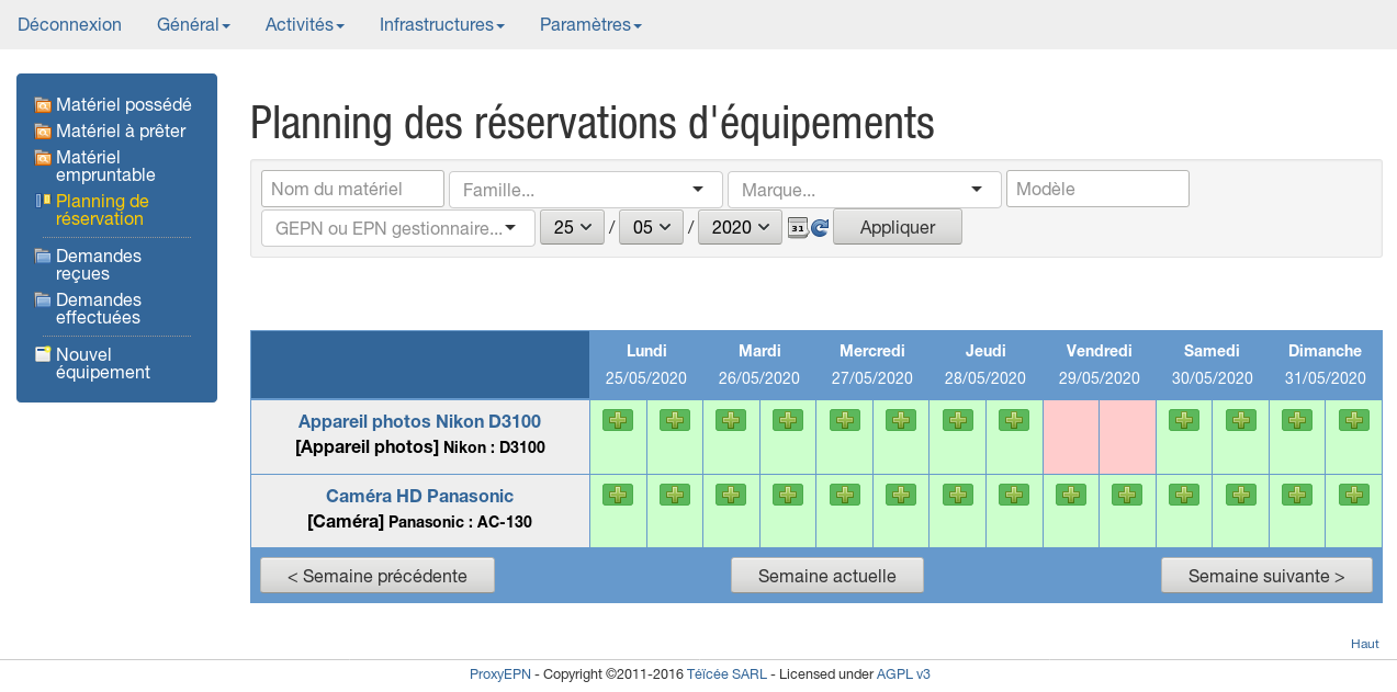 Le module de gestion de réservations a été intégré à l’application ProxyEPN suite à la volonté de certains organismes de mettre à disposition du matériel aux EPN.