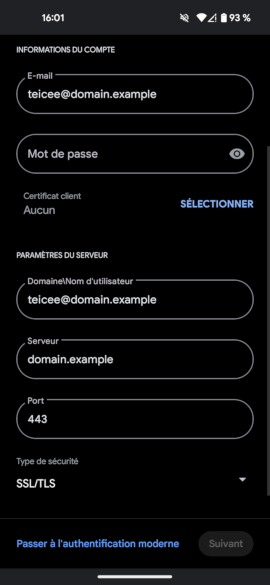 Serveur : votre nom d’hôte, ex: mail.example.tld